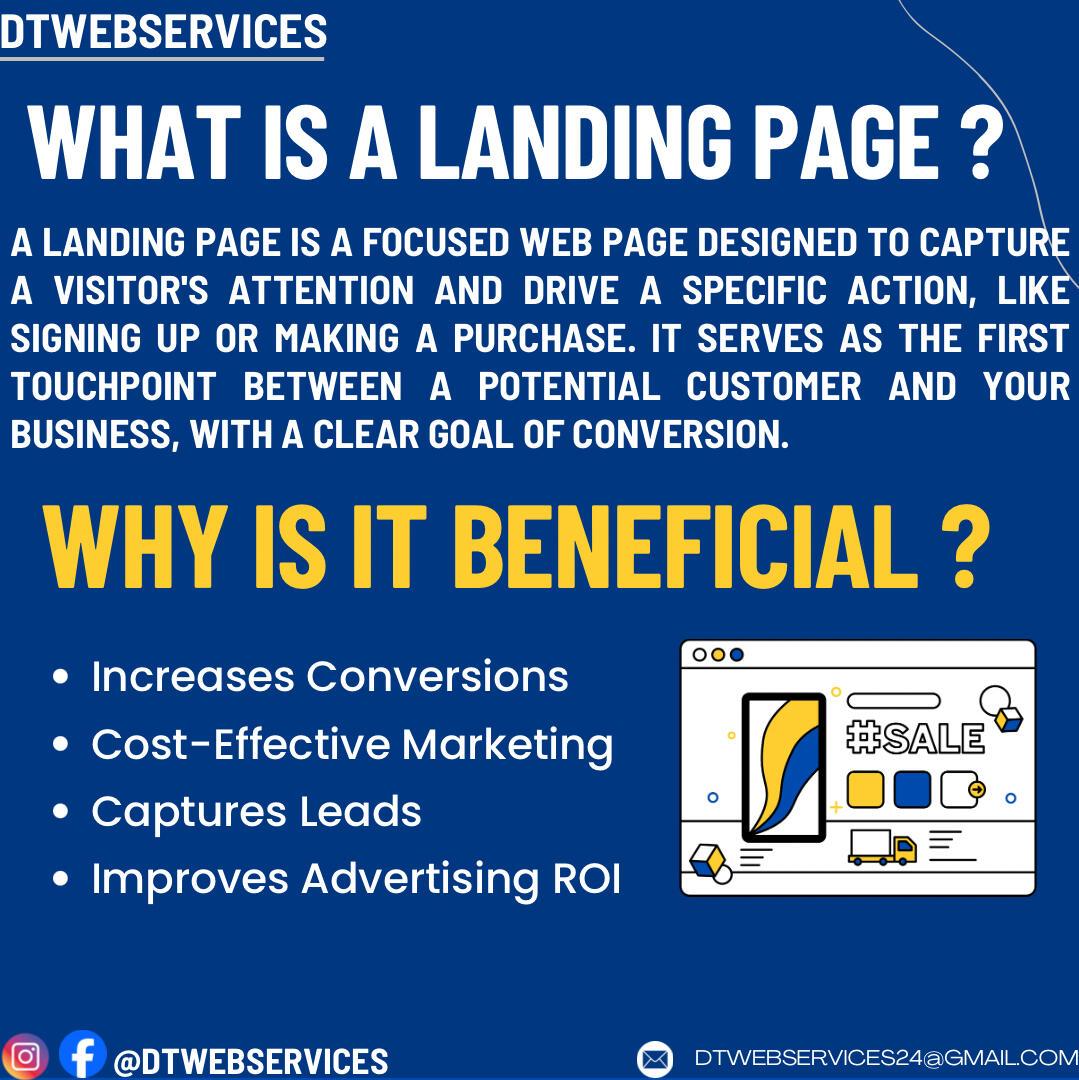 At DT Web Services, we specialize in creating custom landing pages, portfolio pages, and product pages that help businesses and individuals showcase their brand and offerings effectively. Whether you're looking to convert visitors, display your work, or highlight products, we deliver professional and responsive designs tailored to your unique needs. Let us help you make a powerful online impression with a clean, modern webpage.